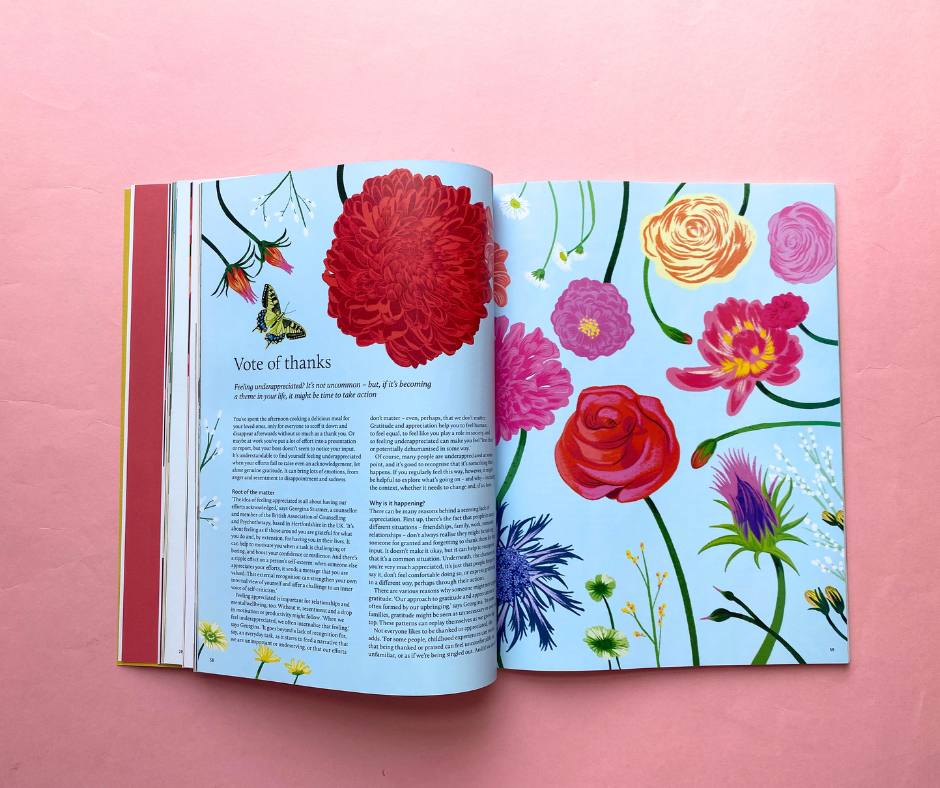 Attraverso articoli, illustrazioni e approfondimenti, la rivista esplora temi come la meditazione, la gestione dello stress, il sonno, le emozioni e le pratiche creative, offrendo spunti concreti per migliorare il proprio equilibrio interiore.