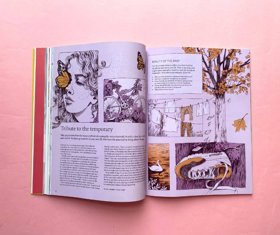 L'uscita numero 73 di Breathe si concentra su diversi temi spesso difficili da affrontare da soli: chiedere aiuto, pronunciare la parola scusa, dire no e accettare un addio. Sfogliando le pagine piene di colori scopriamo come affrontare questi temi con prospettive differenti. Ogni fine diventa un inizio, anche se non sappiamo ancora dove ci porterà.